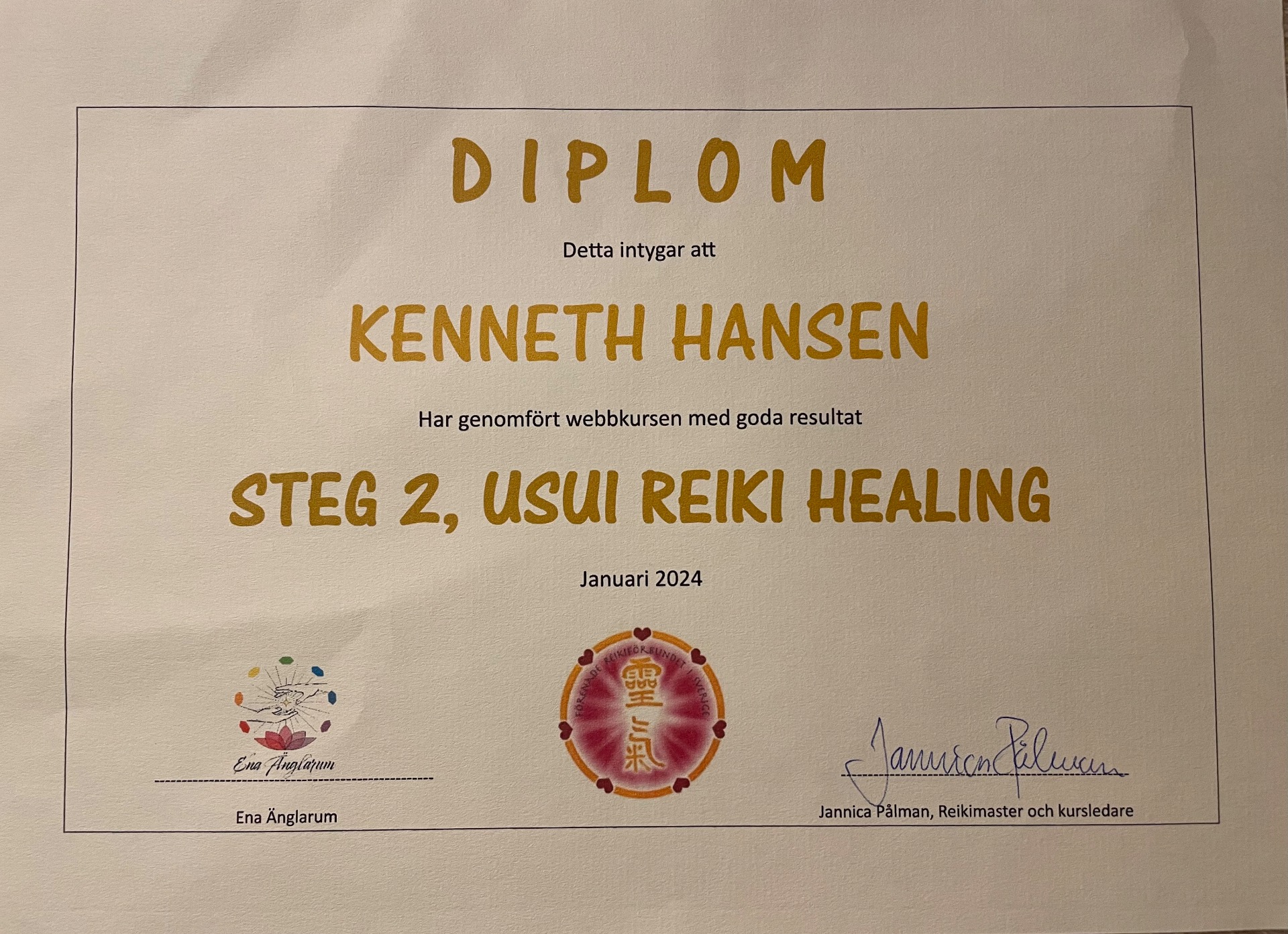Hej. jag heter Kenneth Hansen och är en diplomerad Reiki Healer steg 1 och 2 samt en initierad Sacred Healing Vibration Healer, där jag sysslar med alternativ och holistisk hälso tjänst. Jag erbjuder healing på distans och reiki healing, väst (fysiskt) och österländska metoder. Med distans healingen sacred healing vibration hjälper jag människor att må bra i vardagen igen. Denna kraftfulla teknik, som har förts vidare till mig från generationer av starka mästare och healers. Jag använder denna teknik på distans men även fysiskt. Alla får någon slags bra effekt av healingen. Man får ofta healing för det man behöver mest för tillfället och var man befinner sig i sin medvetenhet. Healing på distans kan ske tack vare all energi vi är omgiven av. Jag kopplar upp mig mot personen i fråga. Man kan jämföra det lite som med ett wi-fi som fungerar trådlöst och genom det sker healingen, där jag tar hjälp av guider mm. När man får denna healingen så är det vanligt att man kan känna pirrande, värme eller kyla i kroppen. Det kan också kännas som det är något som far runt i kroppen. Man kan bli känslosam och få fram bilder eller minnen i huvudet. Allt är helt ofarligt och skadar inte något i din kropp, utan det healar det som är skadat eller löser upp blockeringar, skapar lugnt och ro i kroppen och själ.